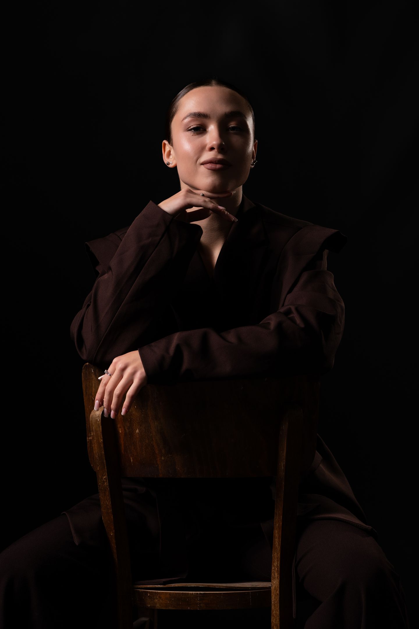 Фотосессия в мастерской-студии на черном фоне.